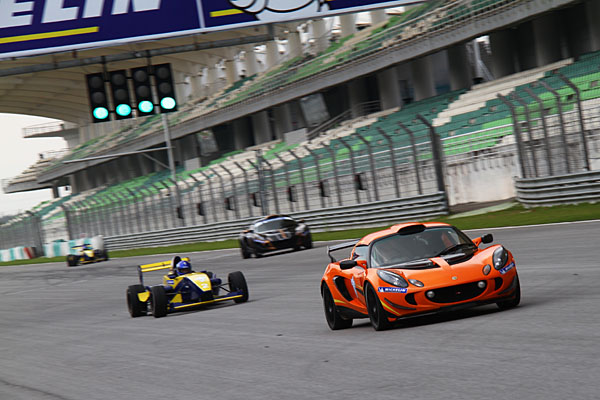 序列式變速系統,起步是最複雜的關鍵,也因此以沙灘車作為後方輔助推力,待賽車速度提升後,沙灘車便會自行離開。而當順利駛出Pit區後,跟隨在Lotus的Safety Car腳步後,說實在以米其林方程式賽車的實力,要瞬間拉近距離,如刀切豆腐般的容易,但由於考量安全,原廠人員嚴格禁止此般行為,約莫50公尺的距離,才是較為合理的安全距離。