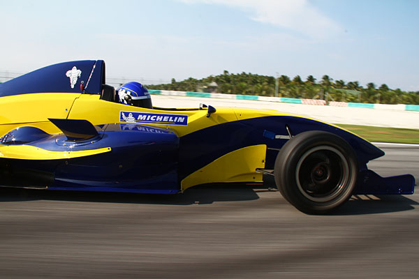 體驗完了泥土地的奔馳樂趣,接下來的,是截然不同的封閉賽道重頭戲。米其林方程式賽車(Michelin Formula)或許僅是入門等級的方程式賽車,但以196bhp的最大馬力搭配上僅480kg的車重,重量馬力比為2.45kg/bhp的驚人程度,就算是Ferrari當家跑車458 Italia,也僅有2.61kg/bhp,也難怪對於賽車而言,「輕量就是力量」確實為關鍵。此般的重量馬力比,也讓米其林方程式可於3.5秒完成0-100km/h加速過程,極速達260km/h。