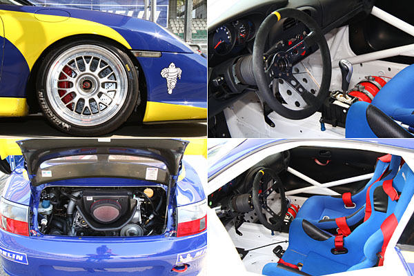 Porsche 996 GT3 Cup全車以符合賽視規格改造,標準的廠車姿態,車重為1300kg,最大馬力380bhp,可於4.6秒完成0-100km/h加速過程,極速可達280km/h,採用前24/64-18、後27/68-18的光滑賽車胎。