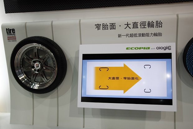 首先是獨家與BMW品牌i3電動車科技一起登場的專用輪胎,Ecopia EP500環保節能低滾動阻力輪胎,尺寸為155/70R19,胎寬僅有15.5公分的19吋輪胎,也算是一種高科技了!加上特製的輪圈,窄胎本來就是節能導向,所以與電動車搭配可以減輕電能驅動時的負擔而且可以增加滑行距離,由此可以顯現普利司通在環保節能上的科技實現能力。