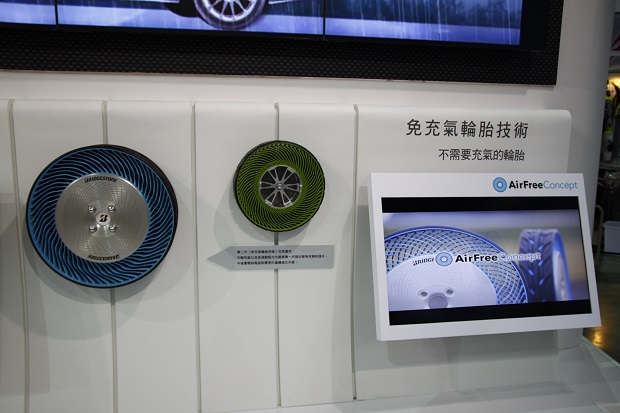 除了與BMW i3合作專屬輪胎以外,現場也展出無內胎的全新概念未來輪胎,AirFree Concept,目前已經進展到第二代,主要也是提供一些日本車廠概念型電動車或是個人載具試驗使用,目前算是測試狀態,未來也有可能提供到市售車使用。