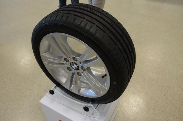 另外在義大利測試的還有第三代的BS失壓續跑胎T001 RFT,一般的失壓續跑胎根據ISO的標準,是要在爆胎後,能以時速80公里行駛80公里的距離,車輛在胎壓為0的時候,還是能夠維持基本操控與行進,這就是失壓續跑胎的概念!而目前全車系都標配失壓續跑胎的品牌,只有BMW!
