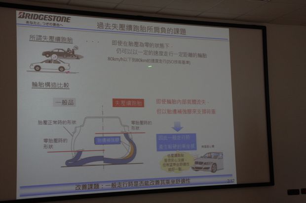 不過普遍來說,失壓續跑胎的輪胎較硬,所以台灣的消費者並沒有很喜愛,市場也不是很熱門,但是我們問道台灣因為地方小,無論是自己換備胎或是找尋輪胎維修更換也算便利,但是教練就回答我們,如果開車的是家中的女性,可能是太太或是女兒,在路邊自行換胎的危險性很高,如果是一般道路還好,但要是到了高速公路上,那可稱之為性命攸關時刻,一點也不誇張!
