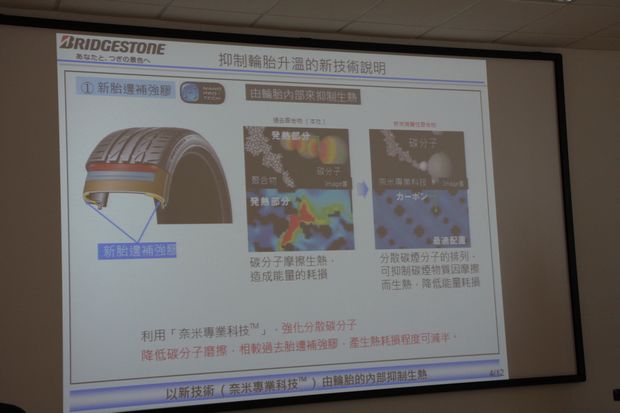 TURANZA T001的最新奈米專業科技,將膠料分子平均散布,減少輪胎發熱的現象,再降低了滾動阻力,所以可以讓車輛得到更佳的油耗表現。
