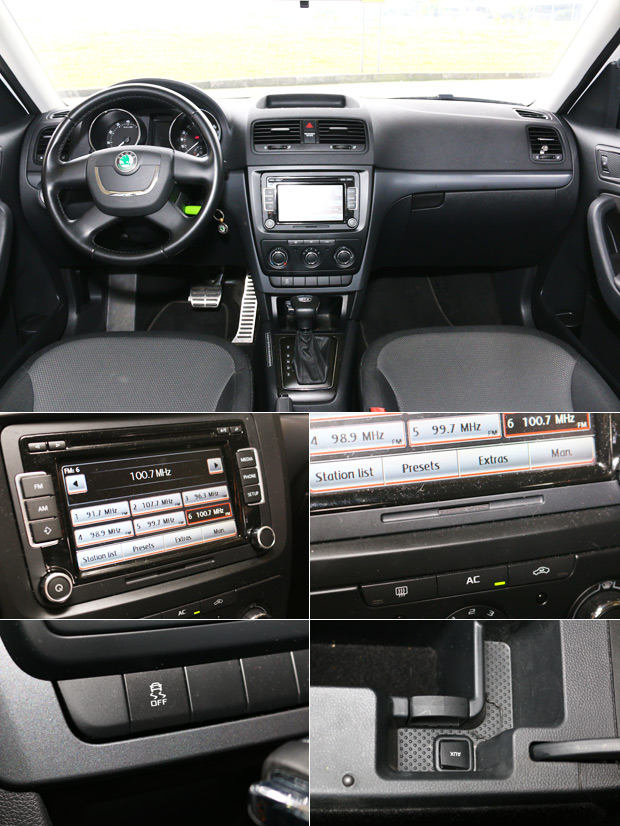 Skoda Yeti在四者當中軸距是最長的,相對地,也展現了四者當中最佳的乘坐空間表現,坐進Yeti的駕駛座,不論座椅還是方向盤,均附有前後上下四向的手動調整機制,唯一稍有微詞的是,Yeti的方向盤在調整好相對位置後總會覺得偏高,若要下調至就手的位置,方向盤的上緣又會遮蔽到儀表的判讀,雖然影響不大,但就是有種「差一點」的感覺。