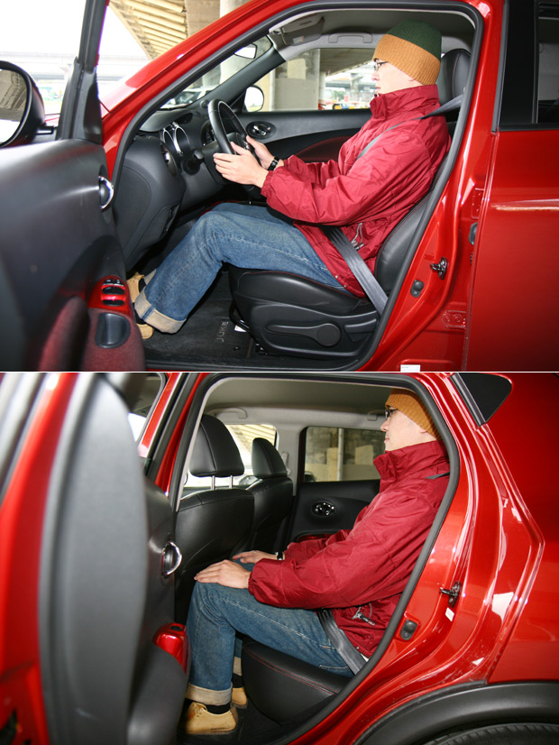 前座就定位後,Juke的後座乘坐空間在四輛Crossover當中顯得突出,突出的原因不是寬敞、而是反之,不論膝部或頭部的空間表現,都令人感覺像坐在一輛2 + 2跑車的後座,Juke擁有本次評比四名參賽者當中第二長的軸距,然而這樣的優勢,卻沒能在乘坐空間上展現。