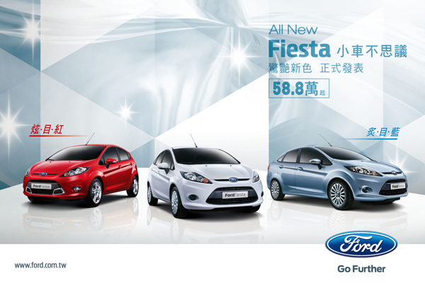 2012 Ford Fiesta 展現卓越性能,操控油耗傲視同級車款,不只為消費者帶來優異駕馭樂趣,更以出色設計在小型房車市場大放異彩。即日起Ford Fiesta再推出「炫目紅」、「炙目藍」兩款外觀新色,全車系共提供八款潮流亮彩,成為小型房車市場擁有最多車色選擇車款,提供消費者多樣選擇(炫目紅、炙目藍、榛藏金、風擎藍、皓月白、尊爵灰、銀砂黑、新世紀銀)!