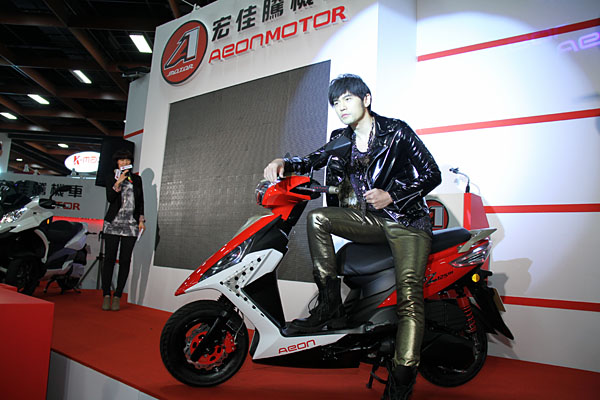 選擇於「第7屆台灣國際機車展」中,台灣機車品牌Aeon宏佳騰,為了一展搶攻台灣機車市場、擴張市佔版圖的企圖心,特別邀請亞洲天王周杰倫擔任品牌代言人,除先行拍攝第一波旗下獨有產品—3D350三輪車款廣告以外,也同場發表了全新運動型速克達機車「ÖZ驚嘆125/150」,搭載諸多豪華配備,車價則展現誠意,分別為新台幣69,800元與74,800元。