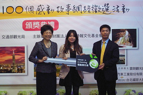 建國百年、行銷台灣,交通部觀光局為向國際旅客及全民分享建國100年的觀光成果。將今年觀光主軸訂為「旅行台灣•感動100」,並藉由「台灣新體驗 100個感動故事徵文比賽」行銷台灣。歷經5個多月徵文期,於12月1日於市長官邸藝文沙龍舉辦頒獎典禮,觀光局局長賴瑟珍、中華汽車曾鑫城經理也應邀出席頒發第一大獎。