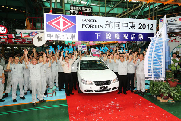 中華汽車傳捷報! 主力車款Lancer Fortis將於今年9月首度進軍中東市場,首年外銷成車將突破千台,這不僅是中華汽車拓展外銷的重要里程碑,也代表了中華的品質受到國際的肯定。為歡慶Lancer Fortis中東向第一台成車下線,8月15日中華汽車總經理劉興臺暨全體同仁於楊梅工廠共同見證成車下線慶祝活動!