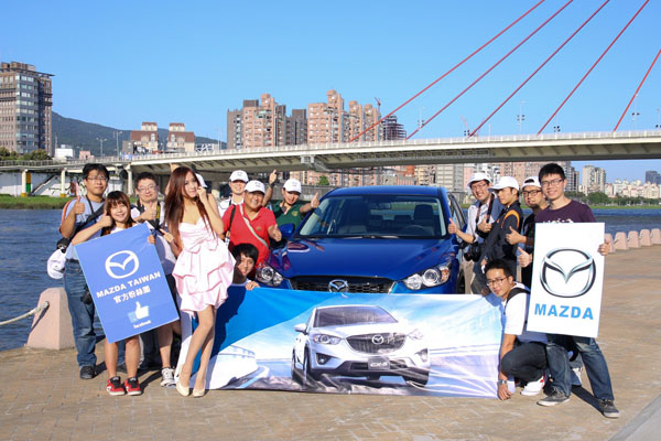 Mazda Taiwan粉絲團為凝聚粉絲向心力、拉近與粉絲的距離,特別於日前號召舉辦「拍出你的Mazda—粉絲團攝影交流活動」,邀請網路報名粉絲來到擁有廣闊風景的北市大佳河濱公園,進行一場別開生面的攝影交流。活動特別準備Mazda最新車款—SKYACTIV未來世代科技跑旅CX-5,及親切美麗的Model讓粉絲們拍攝,還邀請專業攝影講師到場講解汽車攝影技巧,使粉絲們近距離感受並捕捉Mazda CX-5「魂動」美型魅力。
