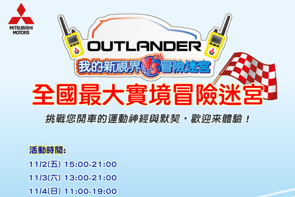 一向求新求變、引領話題的Mitsubishi,再次打破傳統,斥資百萬打造全台最大戶外汽車冒險迷宮,讓試車活動結合冒險精神,吸引廣大民眾目光!