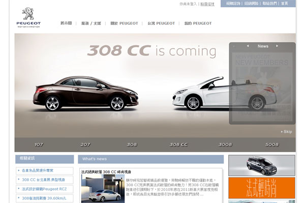 Peugeot 308 CC於2010年底在2011新車大展首度亮相後,即成為目光焦點並吸引許多獅迷朋友們詢問,Peugeot總代理 寶嘉聯合特別於2/19-20台北新光三越信義新天地A11戶外廣場、2/26-27京站時尚廣場1樓大廳連續兩週末舉辦308 CC浪漫外展活動,現場將邀請廣告名模 張虹與308 CC展演法式浪漫精緻饗宴!