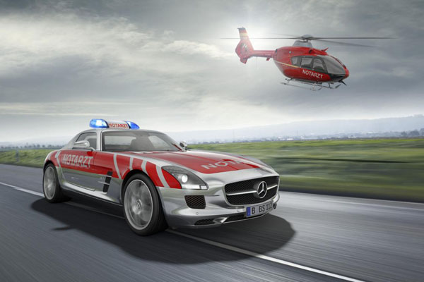不少先進國家為了打擊犯罪以及提昇緊急救援能量,都會採購高性能車種擔任警車或救護車,如:Lamborghini Gallardo便成為義大利警方的最強座駕,德國也有Porsche Cayenne投入救護車行列,讓警消單位如虎添翼;而Mercedes-Benz在即將展開的RETTmobil 2011行動救援展中,發表擁有海鷗翼車門設計的SLS AMG Emergency Medical concept緊急醫療概念車,勢必將成為全場焦點。