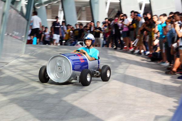 首屆Red Bull Soapbox Race 皂飛車大賽競飆登台!全台52組最具台灣創意代表性的飛天英雄們,聚集在國立臺北藝術大學瘋狂尬車,憑著地心引力和無比的勇氣往下衝!
