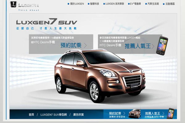 Luxgen7 SUV正式上市後,全省Luxgen汽車生活館賞車人潮絡繹不絕,Luxgen為繁忙消費者們提供網路預約試駕服務,只要前往Luxgen官網活動專區填寫並列印賞車預約試駕資料,再親至Luxgen汽車生活館試駕體驗,即可獲得1:43 Luxgen7 SUV模型車1台,還有機會獲得價值萬元的1:18 Luxgen7 SUV模型車和HTC Desire手機。