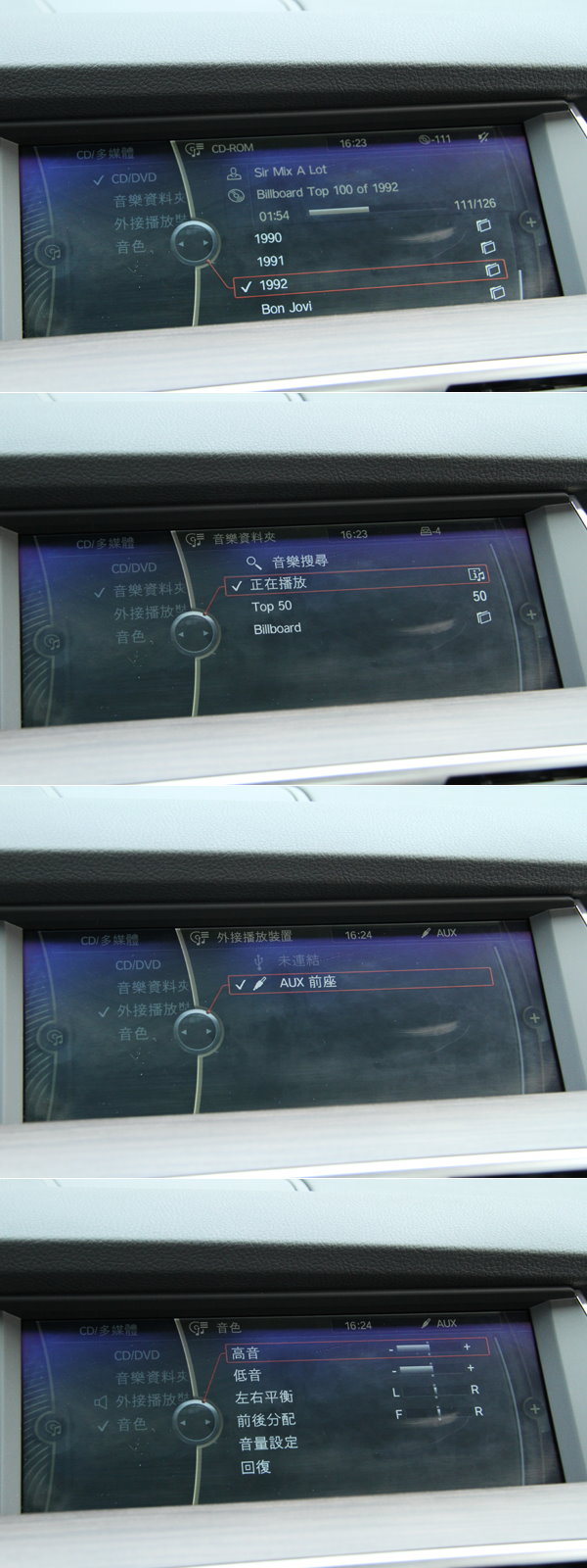CD/多媒體功能中有著四大功能選項,時興的Aux-in功能也不缺席。