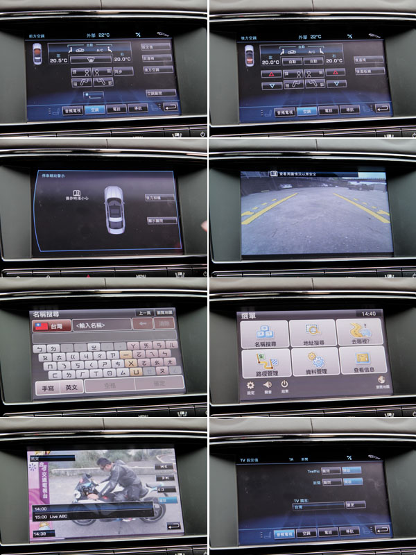 除此之外,在中控台上還配有大型8吋中控台iTech人因工程整合科技觸控螢幕,功能涵蓋影音、巡航、藍芽、通訊、空調系統與個人化設定,相較於對手大多採用單一選鈕為主的操作介面,Jaguar的螢幕觸控系統,較能夠依循大多數使用者的邏輯操作,操作起來就如同智慧型手機般,依功能鍵點選便能使用,但XJ所配置的系統功能較XF更為強大,所以即使有了使用XF上觸控系統的經驗,在不算長的試駕時間內,還是無法將所有界面摸透,但是依照過去經驗,要上手並不是見太難的事。另外,難得的是Jaguar在XJ上已經全面導入中文化界面,對於台灣的消費者而言可說是一大福音。