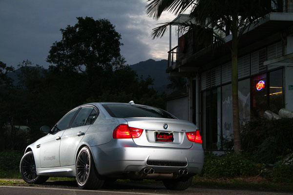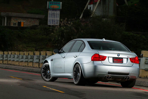 從車尾角度欣賞,尾廂上蓋的〝M3〞銘牌與四出式排氣尾管,應是最明顯的身分特點。