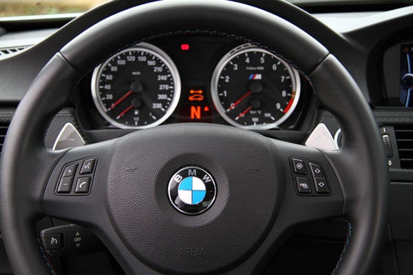 或許是於2007年BMW所舉辦的E92 M3 Coupe駕駛體驗過於短暫,也或許是自身腦袋不太靈光,面對著E90 M3 Sedan從方向盤、排檔座周遭的操控介面,怎沒有任何一絲的熟悉記憶?先前試駕的為手排車型,這是筆者稍可自我安慰之處,畢竟眼前這搭載BMW最新M-DCT七前速雙離合器自手排變速系統的換檔利器,可操作的玩意,絕對是較那原始的手排來得多點。