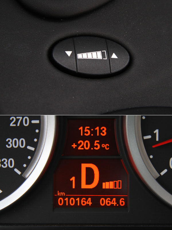 花點時間熟悉後,原來,異於傳統自排變速系統設計的M-DCT,在排檔頭上方清楚說明操作邏輯,在一般中立的狀態中,往左一撥,為空檔,往左上排入,為倒檔,往右一撥,為D檔,再往右撥一次,則為S運動模式,無論在D檔或S檔模式中,皆可透過排檔桿的前後撥動,或是方向盤後的換檔撥片,進行手排模式的升降檔動作,而如果你認為這樣的選擇還不夠多,M GmbH賦予了此變速箱一〝Drivelogic〞換檔邏輯介面,就安排在排檔桿之後方,除了於D檔與S檔模式中各提供5種換檔邏輯外〈D1、D2…D5,與S1、S2…S5等〉,第11種「隱藏模式」則需在DSC動態穩定控制系統關閉著狀態中,所謂的〝S6〞模式才會現身。