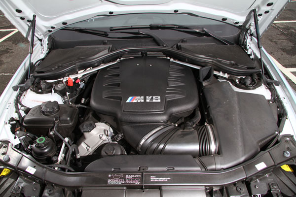 E90 M3 Sedan所搭載的3999c.c.之自然進氣V8汽油引擎,具備420hp/8300rpm最大馬力,與40.8kgm/3900rpm峰值扭力,原廠數據顯示可讓其於4.7秒完成0-100km/h加速過程〈E92 M3 Coupe車型為4.6秒〉,極速限制在250km/h。