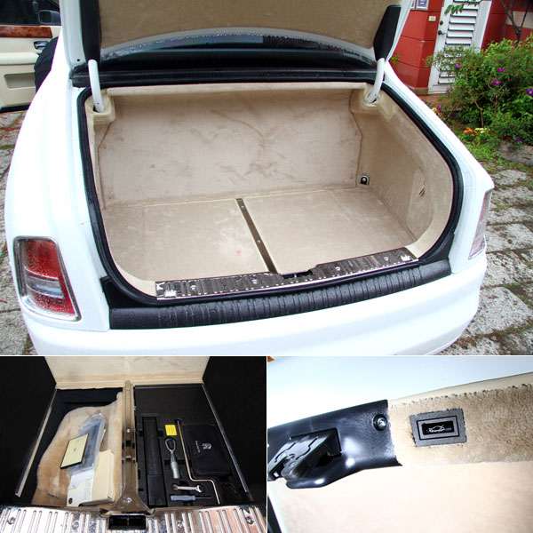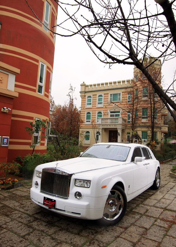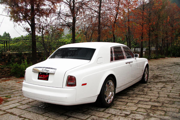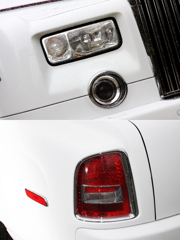 以Rolls-Royce自豪的手工定製部門與工匠技藝,從飛天女神、到尾廂上的飾條,幾乎全身覆蓋於車體結構上的外衣,皆提供了買家琳瑯滿目的客制選擇,且在其官方網站上,便提供相當齊全之客制選購功能,可透過網站上的模擬畫面,預先了解如愛車以自身之需求與喜愛搭配厚的外貌,會呈現何等之造型與姿態。而此輛選擇以純白車色作為外衣的Phantom,全車採取單一色系,輪圈為鍍鉻亮面的經典七幅款式;而在細節處,如飛天女神、引擎蓋隆起兩側的立體線條、車門把手、後廂飾條、頭尾燈飾框等,也皆用上了象徵豪華與高貴的鍍鉻裝飾;不過與原廠所提供眼花撩亂的車色選擇、細節選配項目相較,此輛Phantom是較為低調了些,但以其白色車身與英系優雅血統相襯,倒也相得益彰。