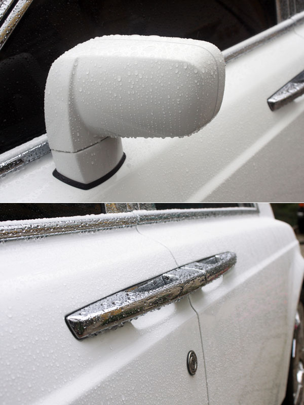 獨立式的車外後視鏡,與為了對應對開式車門而設計的車門把手,也是Phantom上的專屬識別特徵。