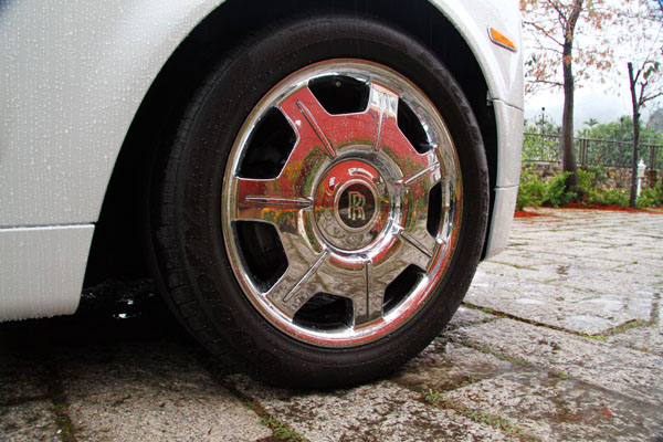 21吋的經典七幅輪圈除了一般霧銀式樣可選擇外,也可選擇與此輛Phantom相同的亮面鍍鉻式樣;對應的輪胎尺碼則為Goodyear EMT 255/50R21 106W。