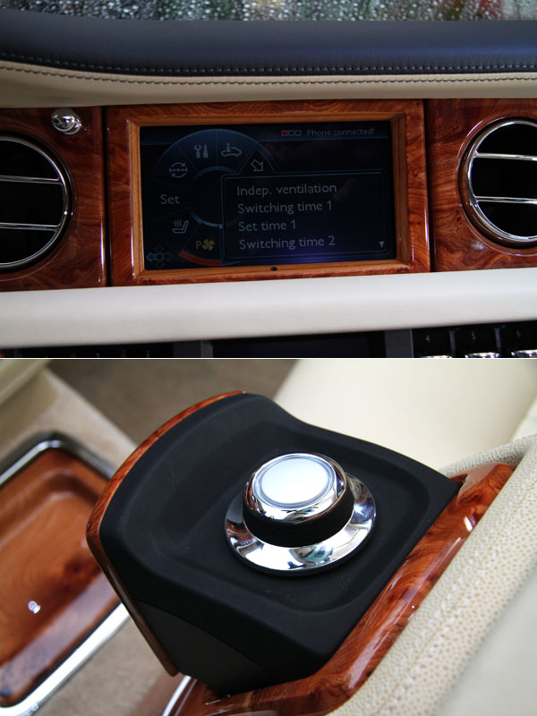 源自BMW iDrive的車內資訊整合平台科技也於Phantom上出現,控制旋鈕則安置於中央扶手前處,需向前拉出方可控制。