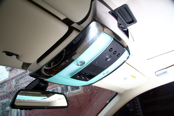 前座幾乎所有的控制旋鈕與按鍵皆採鍍鉻表面裝飾,而特別的是,座椅調整介面安置於中央扶手下(左下圖),需打開上蓋後方可調整,為一需要適應之處。