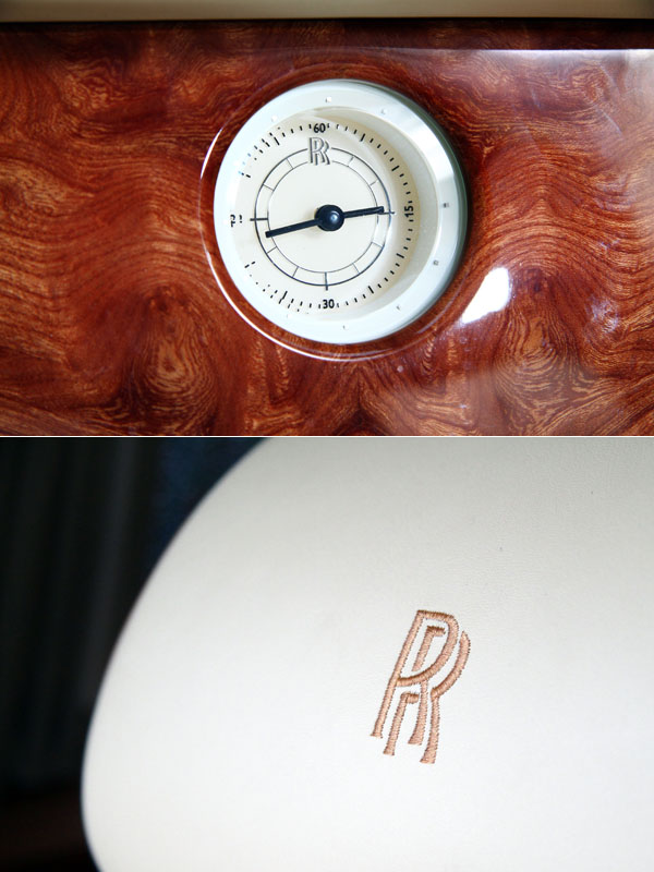 打開Rolls-Royce慣有的對開車門設計,Rolls-Royce英國皇宮般的內裝格局呈現眼前,沒有浮誇的富麗堂皇,而是在全數高檔的用料中,呈現出典雅奢華之華麗;選用的乳白色車內皮革,皆是經過原廠專業工匠從超過11張原始獸皮、經過兩個星期的整皮、挑選、染色、切割與縫製後完成,頭枕上還選配了〝R-R〞品牌廠徽繡字,更顯獨特。全車內裝運用的大面積木紋飾板,全套皆是來自同顆樹木細心切割、並經過縝密的後製處理後而完成,雖從肉眼可看見接合之處,但用指尖細細觸摸,那光滑一致的平滑,更讓人從心裡佩服著這傳承多年的造車工藝。除了高檔真皮、實木飾板以外,鍍鉻裝飾也是不可錯過的一環,充分運用在車內每個控制介面、把手、旋鈕上,無從挑剔的質感與份量,令人愛不釋手。