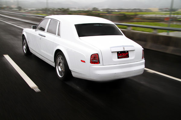 轉上高速公路,此時的Phantom仿若放出柵欄的猛獸般,以龐大的身軀不斷吞噬著前方路面。不客氣的踩下油門,這大傢伙似乎不顧一切的拋開自身重量,以渾厚的力量推著自身前進,且在行駛過程中,你除了可從眼前的儀表速度、兩側飛掠的景色判別出目前是以高速行駛外,若你關閉音響,陪伴這此高速旅行的,只有從空調出風口傳出的風吹聲…