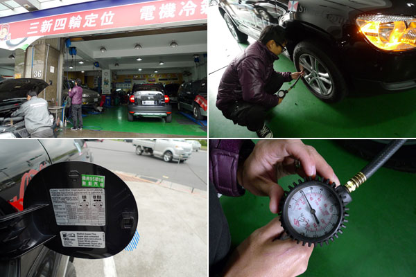 在最後加油前,我們像內湖三新汽車商借打氣設備,確認所有輪胎的胎壓都符合原廠標準。