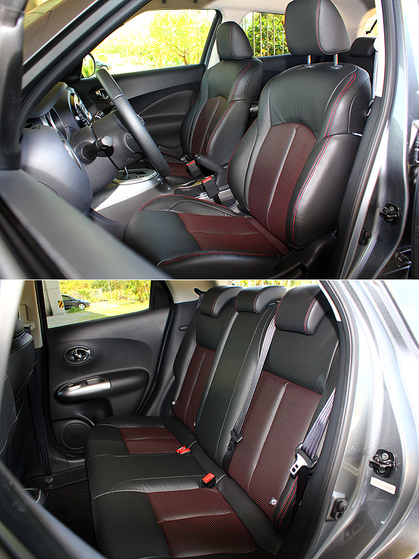 運用紅色縫線與透氣皮革點綴的運動化座椅,為Juke 1.6 Turbo的車內帶來動感十足的氣息。