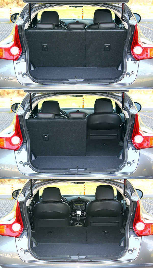 配備可6/4分離傾倒後座椅的Juke擁有251公升至830公升的行李箱容積,就其設定的目標族群而言,已足敷使用。