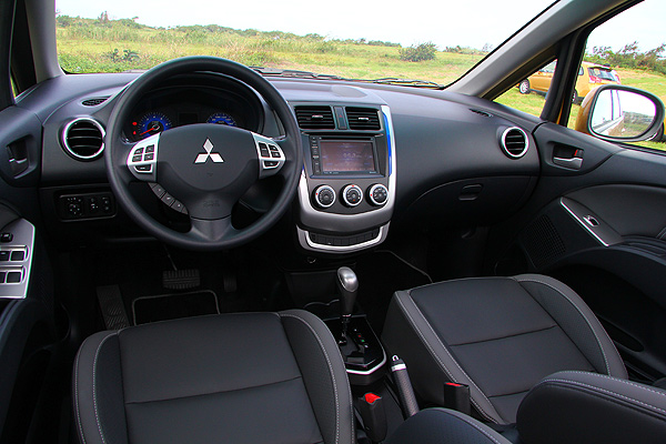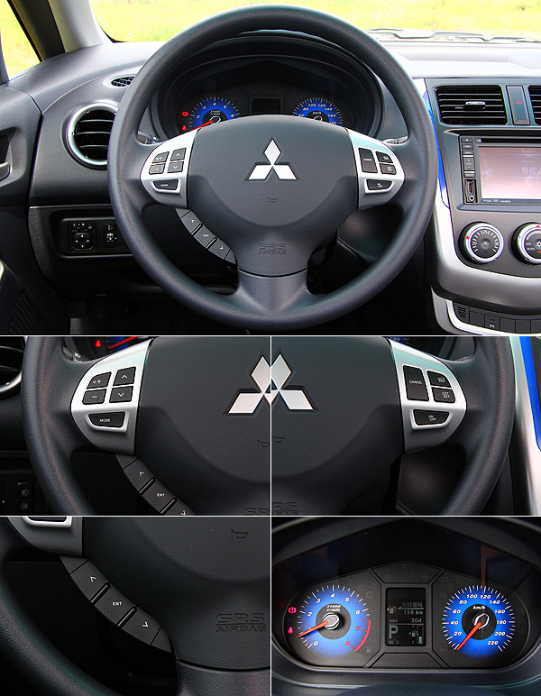 3輻式方向盤與Lancer車系目前使用的相同,雖然未搭配換檔撥片,卻也散發少許的動感氛圍。同時,整合音響與定速巡航的多功能方向盤,也帶來順手、便利的駕駛介面。