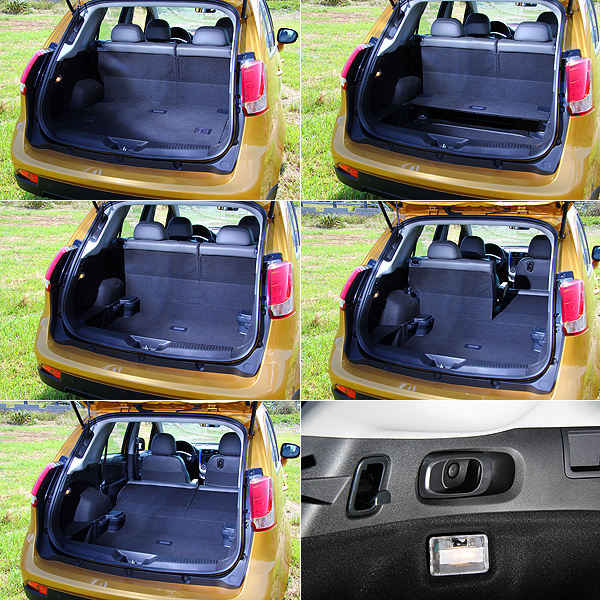 兩層式的行李箱底板搭配6/4分離傾倒座椅,擁有豐富多元的收納空間變化,搭配掛勾與後座椅背快速釋放裝置,更增加使用彈性。