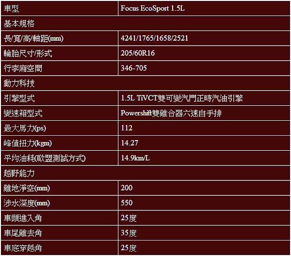選擇餘11月正式發表前,福特六和搶先提供Ford EcoSport 1.5L供媒體試駕,期望能獲得更多消費者的意見。