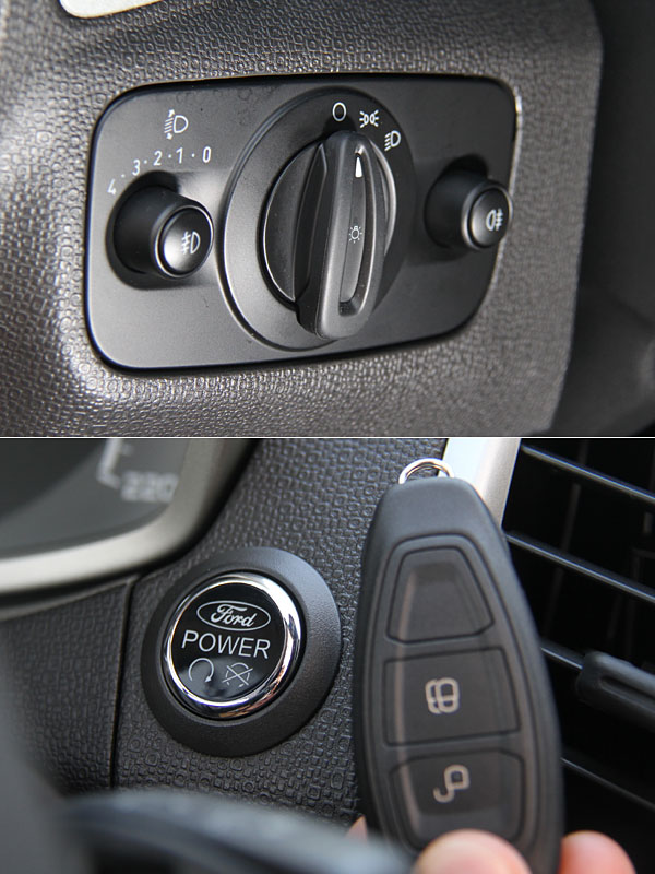 方向盤左側為燈光開關總成,右側則為Ford Power引擎啟動/熄火開關。