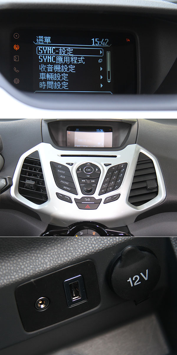 頂級車型配備SYNC全中文娛樂通訊整合系統,另有AUX-in與USB外接音源插座。