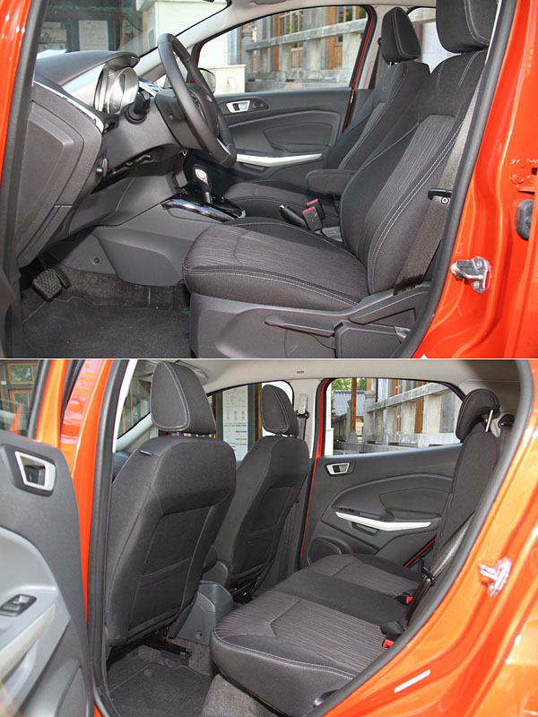 既然使用Fiesta的底盤基礎,EcoSport的前後空間不會是個太讓人驚艷的長處,不過聰明的是,除了盡量利用2521mm軸距長度以外,透過盡可能的向上發展的空間特性,1658mm車高內給予了還不錯的頭部空間,雖然車身腰線拉高,但乘坐在內沒有讓人過於緊迫的空間感,雖然不到寬敞無比,但說是擁擠都會中的小小天地,EcoSport倒還有此能力給予。