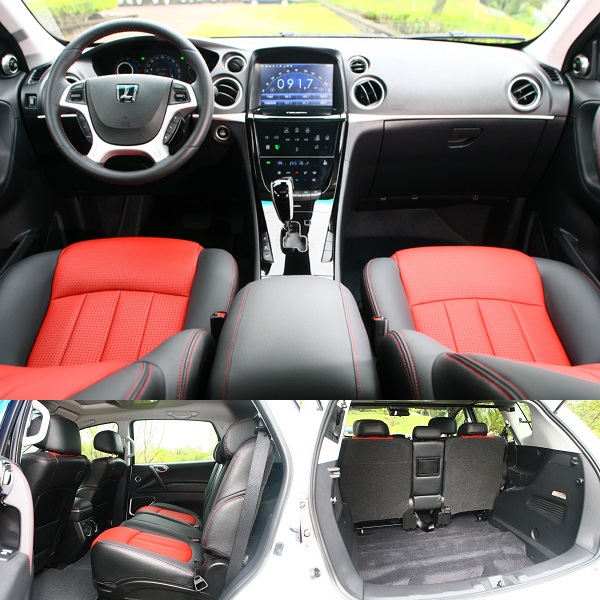 車艙部分,新穎的U7 Turbo最引人注目之處,莫過於中控台改成彷彿一體成形的鋼琴烤漆觸控面板,較原本傳統式的旋鈕與按鍵設計就觀感上顯然簡潔許多,而其中上半部還可透過同樣採觸摸控制的開關,用以啟閉內藏的光碟片讀取機制、USB插槽以及置物盒等空間;至於其他部分則與原本的Luxgen7 SUV擁有大致相同的輪廓,但在細節材質的選用與鋪陳部分,則又有了更上一層樓的表現,而今天這輛Sports版本則再多了紅黑配色皮椅以及紅色車縫線修飾,較可惜的是座椅形狀設定得有些奇怪,乘坐於上會有屁股被稍稍拱起來的感覺。