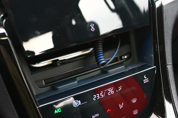 觸控面板開啟後還有一個置物空間與USB、光碟插槽。
