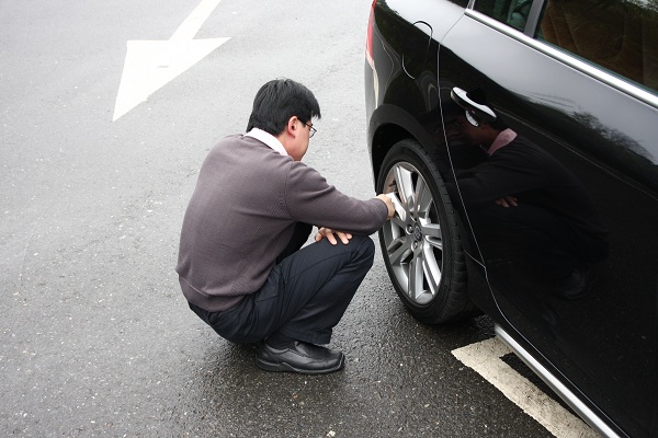 跑到縣界碑的停車場,Steven略為測量輪圈的熱度,感覺此輪圈散熱頗佳。
