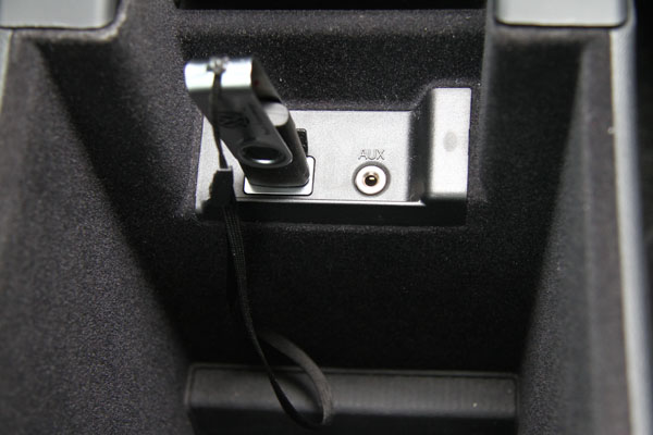 AUX/USB/iPod外接音源介面設置於中央扶手下方置物盒內。