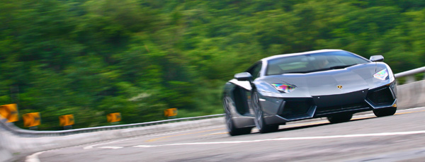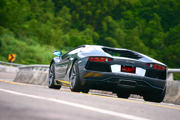 而此刻隨著路況漸好,路上的車也越來越少,這輛Aventador LP 700-4的速度也因此可以〝略為提高〞,當這輛極速達350km/h的超跑以百餘公里時速牛刀小試巡航於高速彎中,可以清楚感受到它的循跡能耐有多麼高深,透過前255/35 R19與後335/30 R20的巨胎,加上四輪驅動系統與水平推桿式懸吊的襄助,循跡仍然穩定到彷彿軌道車般不動如山,再快呢?很遺憾沒有這個機會可以嘗試,不管是阿凱還是我開,在公路上應該都不會想把自己或這輛車置於如此險境。