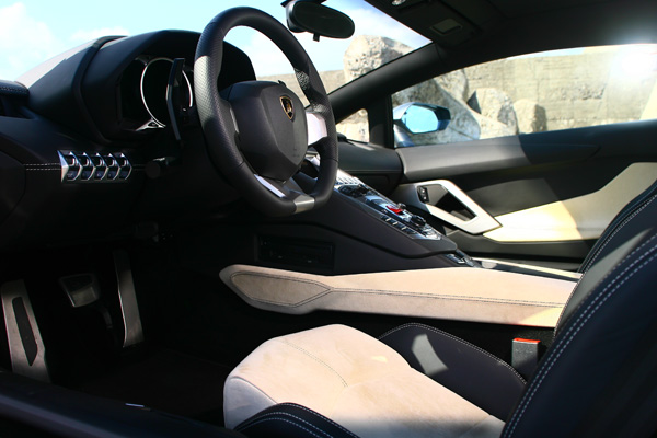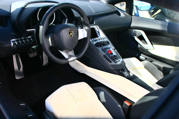 準備坐進Aventador LP 700-4,確實,開關鍘刀式車門得花上多一點點的力,對於男生還好,但考量到真正的車主身旁女伴可能多嬌滴滴手無縛雞之力,這樣〝粗重〞而又充滿身紳士風度外加盡享成就感的事,還是交給買家執行即可。