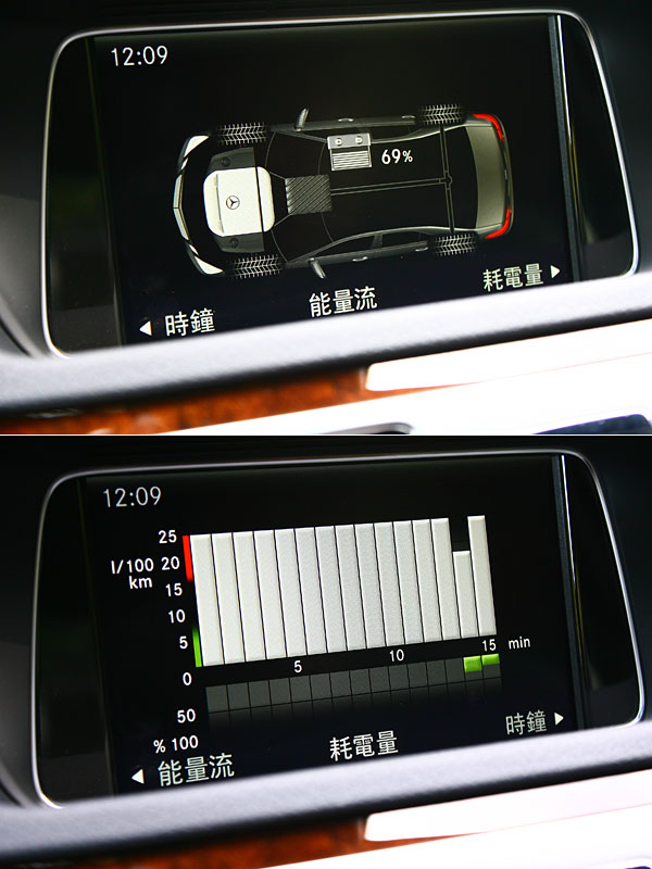 COMAND Online多媒體系統中的彩色螢幕也會呈現車輛能量流與耗能記錄。
