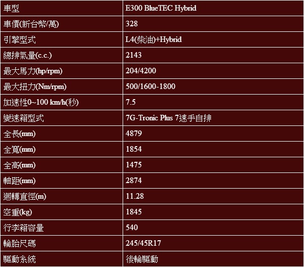 E300 BlueTEC Hybrid基本規格表